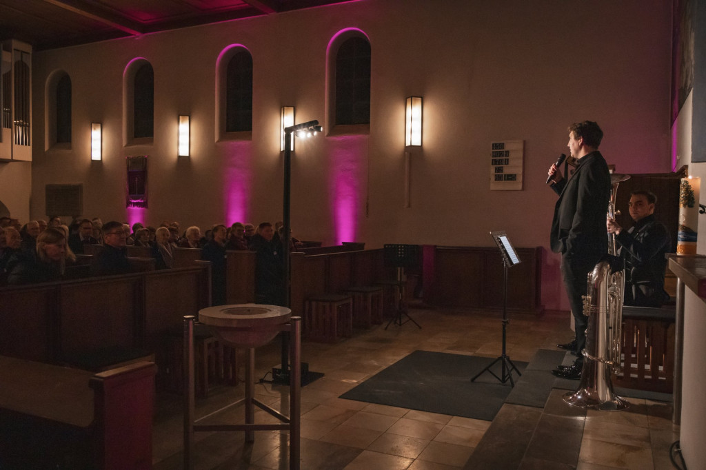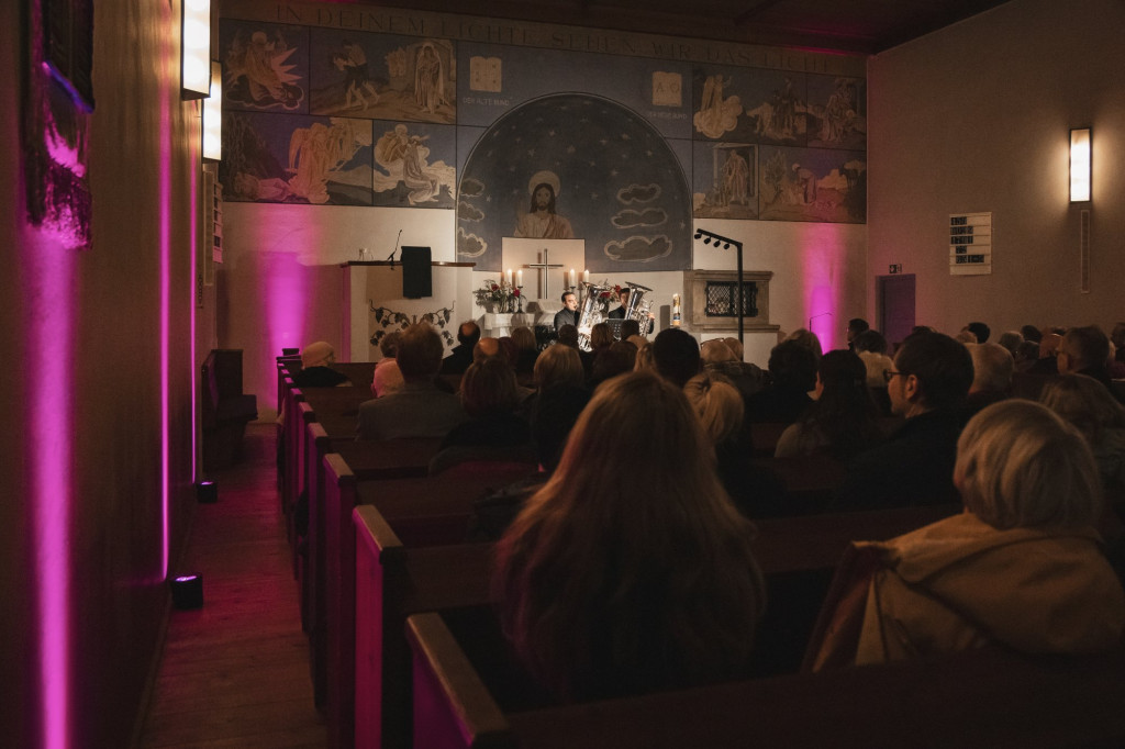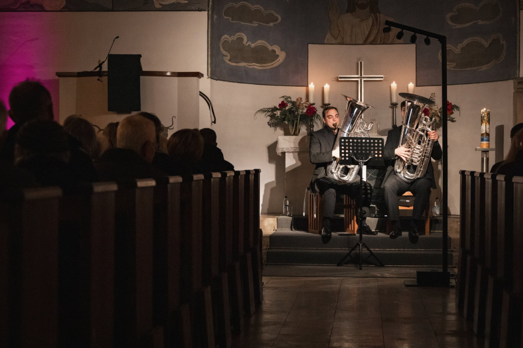 In der voll besetzten Christuskirche sorgten diesmal die Berliner Musiker Donath Rehm und Matthias Arnold für die musikalische Gestaltung des Abends auf zwei Tuben. Ihr Programm spannte einen weiten Bogen von eher ernsthaften Kompositionen bis hin zu einem Abba-Arrangement und schuf damit eine abwechslungsreiche und besondere Atmosphäre.