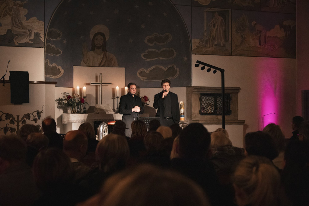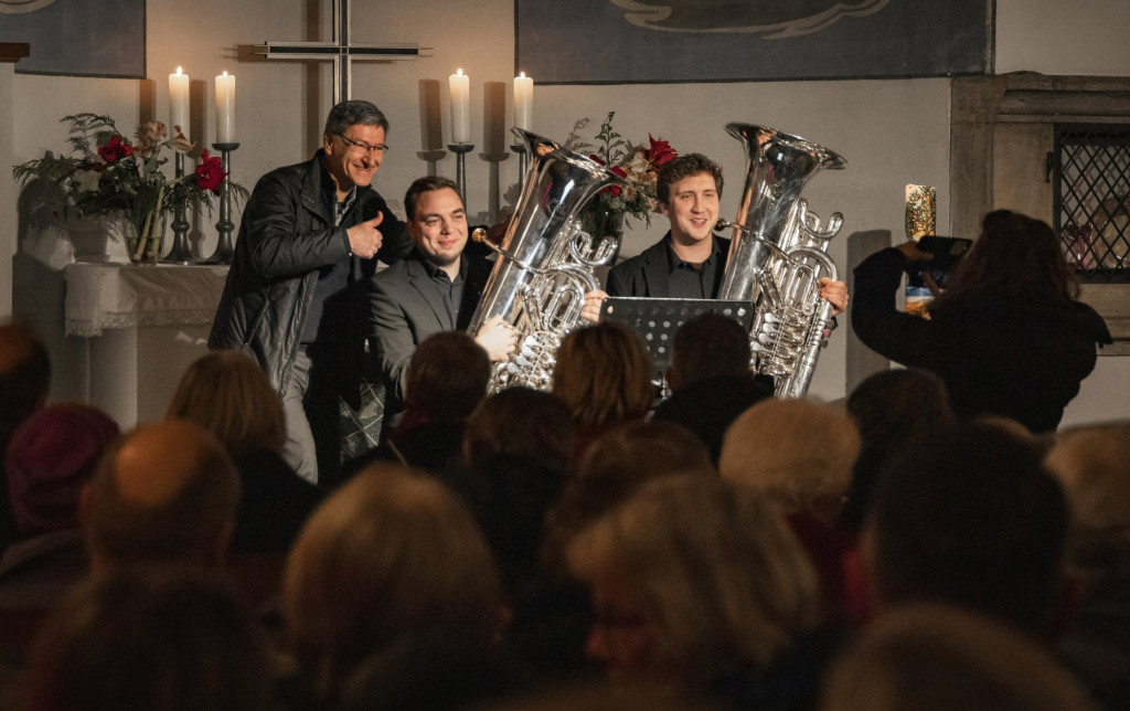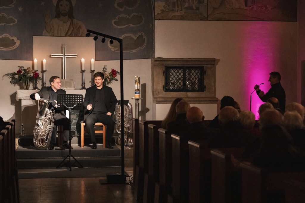 In der voll besetzten Christuskirche sorgten diesmal die Berliner Musiker Donath Rehm und Matthias Arnold für die musikalische Gestaltung des Abends auf zwei Tuben. Ihr Programm spannte einen weiten Bogen von eher ernsthaften Kompositionen bis hin zu einem Abba-Arrangement und schuf damit eine abwechslungsreiche und besondere Atmosphäre.